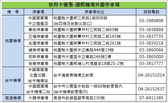 出遠門到國外,到了機場得好好安置自己的寶貝愛車,快來看看各家信用卡的停車優惠,您一定可以找到適合又滿意的方案。